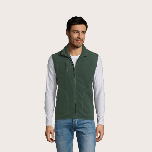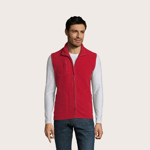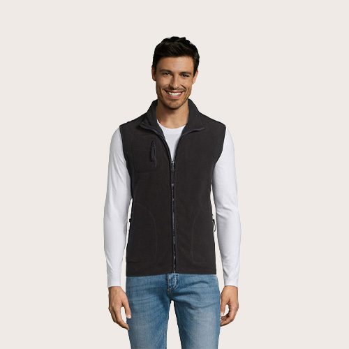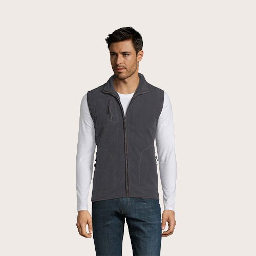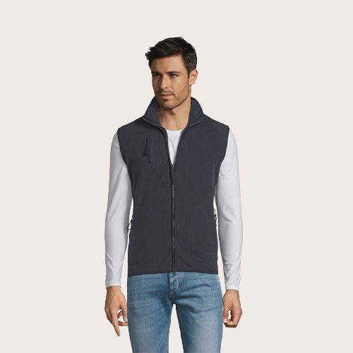 Chaleco unisex, 100% poliéster – Alta densidad, Corte corto, Antibolitas, Cinta de refuerzo en el cuello, Cuello alto forrado, Corte recto, 3 bolsillos con cremallera.