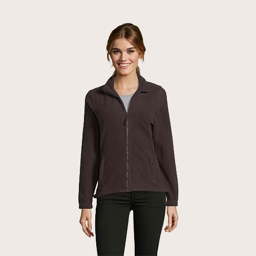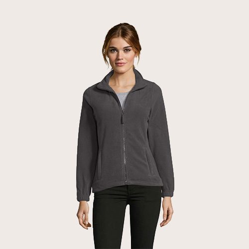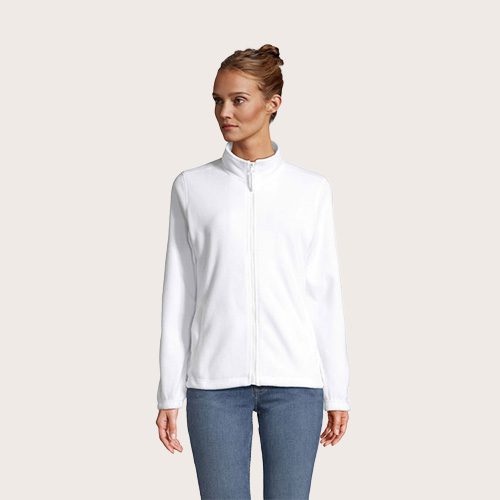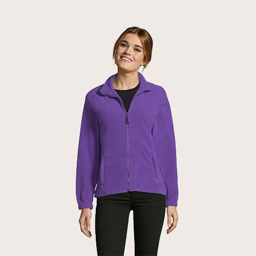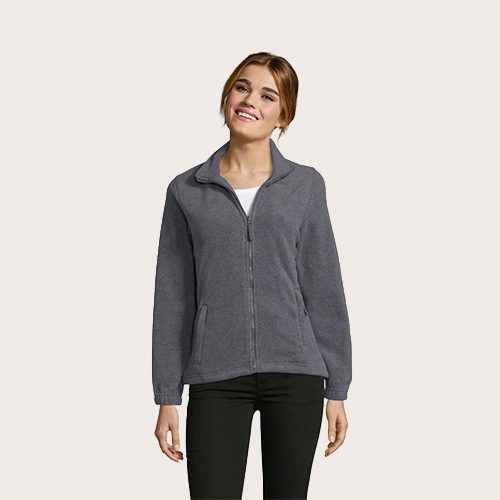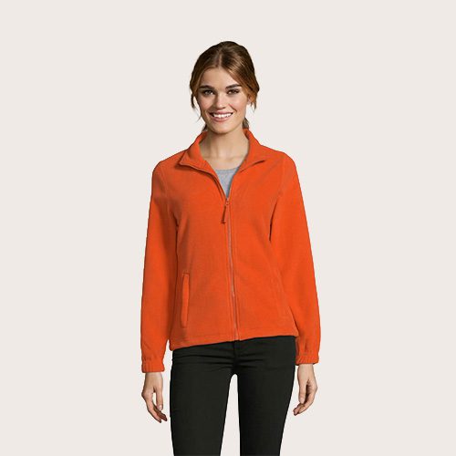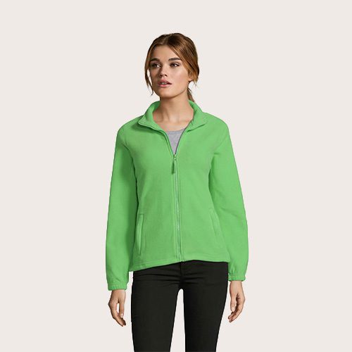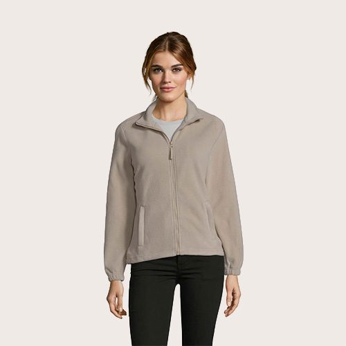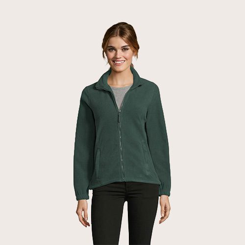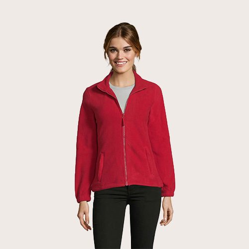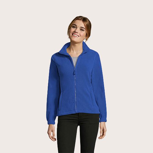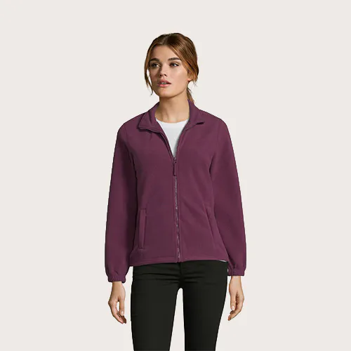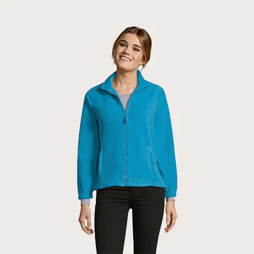 Chaqueta de fleece con cremallera mujer, 100% poliéster de alta densidad FLEECE 300, corte corto, antipilling, cinta de refuerzo en el cuello, cuello alto forrado, 2 bolsillos con cremallera y solapa, corte entallado, puños elásticos, canesú trasero de media luna, cordón elástico en el bajo.