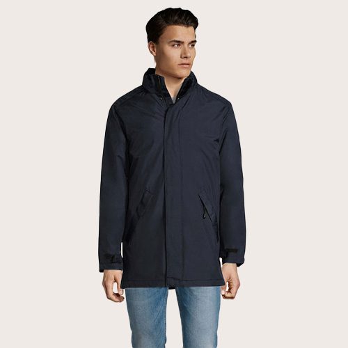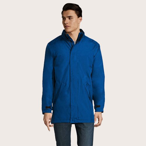 Chaqueta unisex con forro acolchado, 100% poliéster – revestimiento de pvc, forro y acolchado : 100% poliéster oxford 300d, abertura de cremallera con doble cursor y tapeta con correas de auto- agarre y botones de presión ocultos, capucha en el interior del cuello, forro polar en el interior del cuello, 2 bolsillos exteriores con cremallera y solapa, 1 bolsillo interior, cierres en los puños.