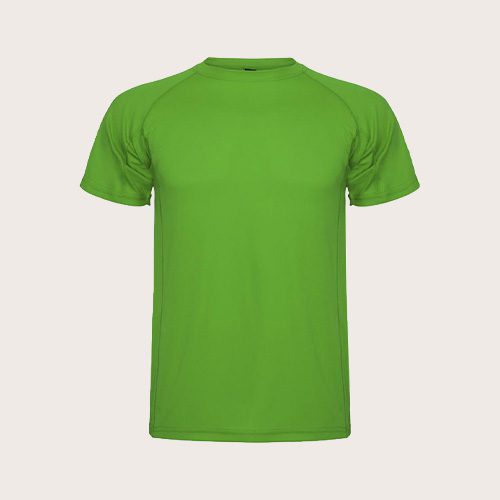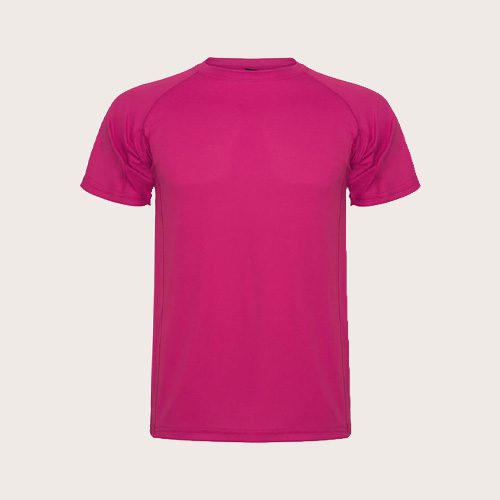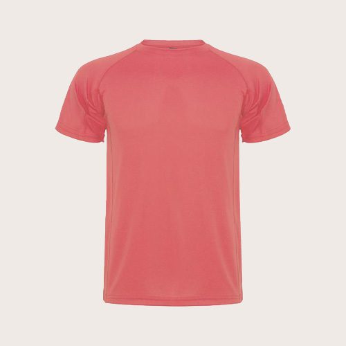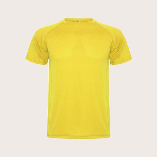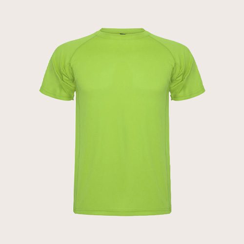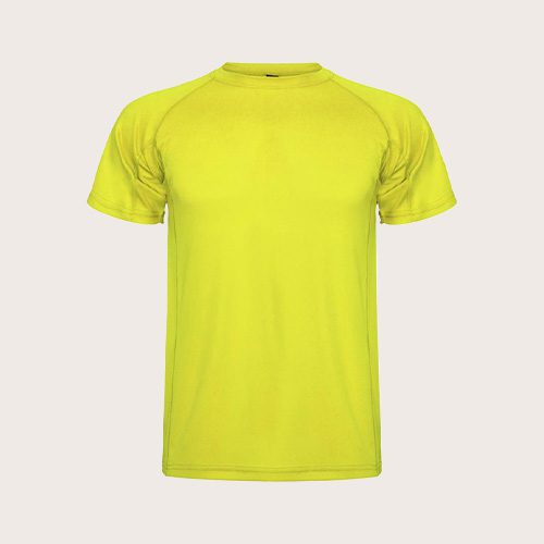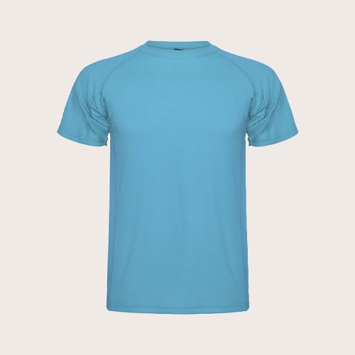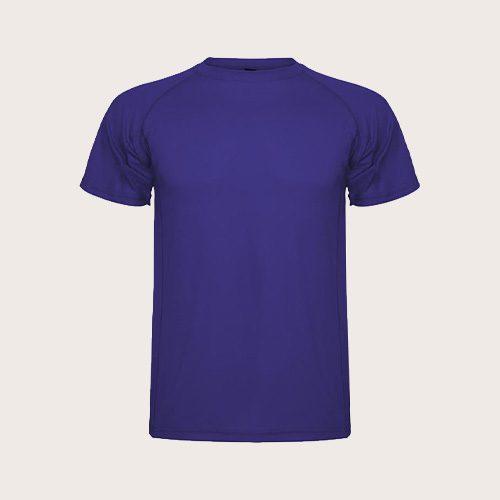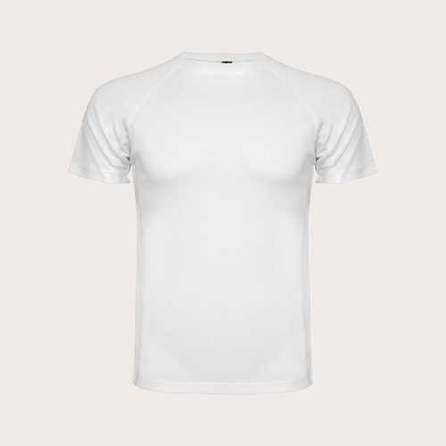 Camiseta técnica de manga corta ranglán. Cuello redondo con cubrecosturas. Aberturas laterales con remallado a juego. Tejido transpirable de fácil lavado y secado. Etiqueta extraíble. Tejido técnico. Factor de protección ultravioleta. Punto piqué 100% Poliéster, 150 g/m2.