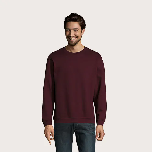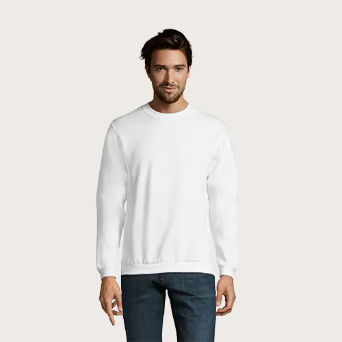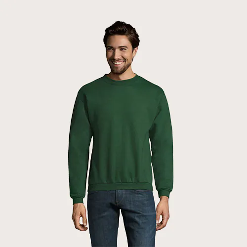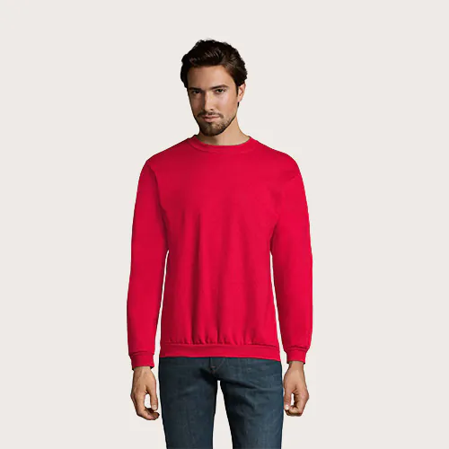 Sudadera Hombre 260g/m². La mejor relación calidad/precio del mercado con un tacto suave, polar perchado, 50% algodón – 50% poliéster, cinta en el cuello, puños, cuello y base con acabado de punto acanalado con elastano.