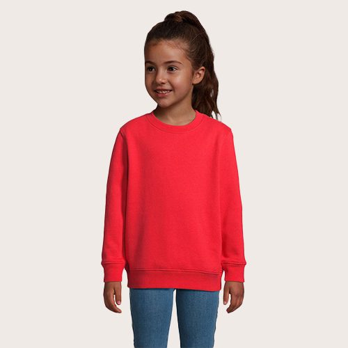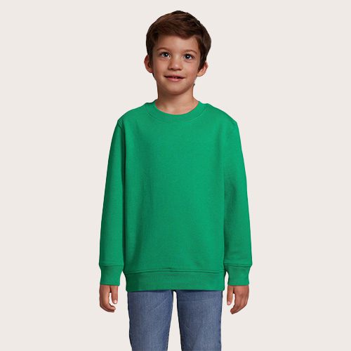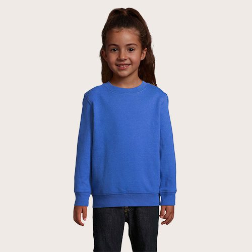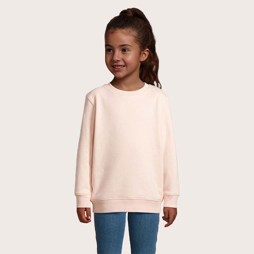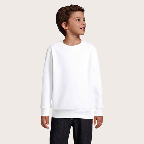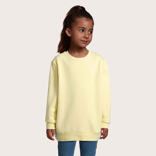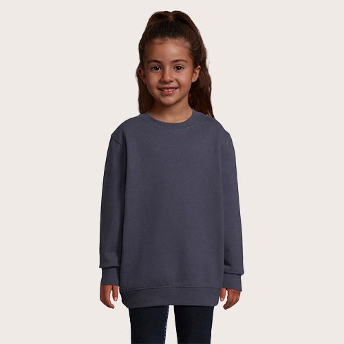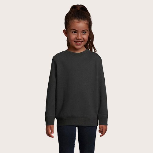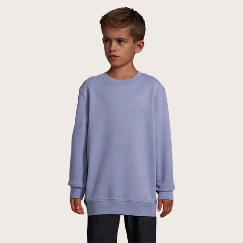 Sudadera sin capucha niños unisex, 80% algodón – 20% Grs poliéster reciclado certificado. Cuello redondo, mangas montadas, acabado de canalé 1×1 en cuello, puños y bajo, media luna y tapacosturas de punto liso en el cuello, Corte relajado (1) Grey mezcla : 73 % algodón / 20 % poliéster reciclado / 7 % viscosa.