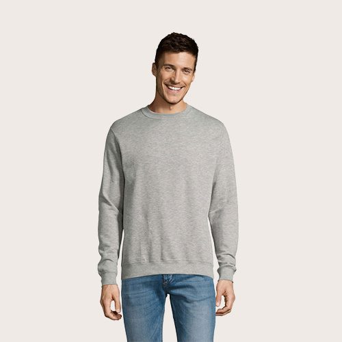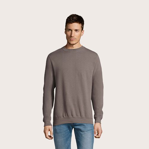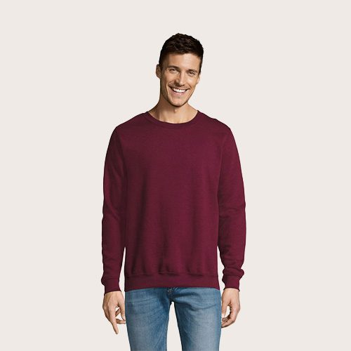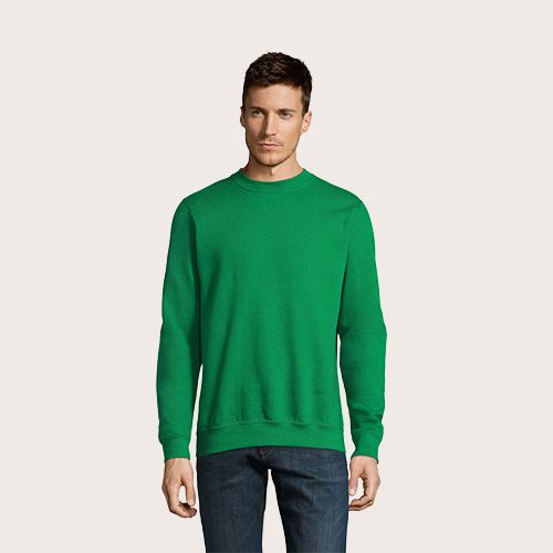 Sudadera unisex, 50% algodón hilado en anillos – 50% poliéster BRUSHED FLEECE 280, cinta de refuerzo en el cuello, puños, cuello y dobladillo de canalé de elastano, Juego de mangas, corte y costura.